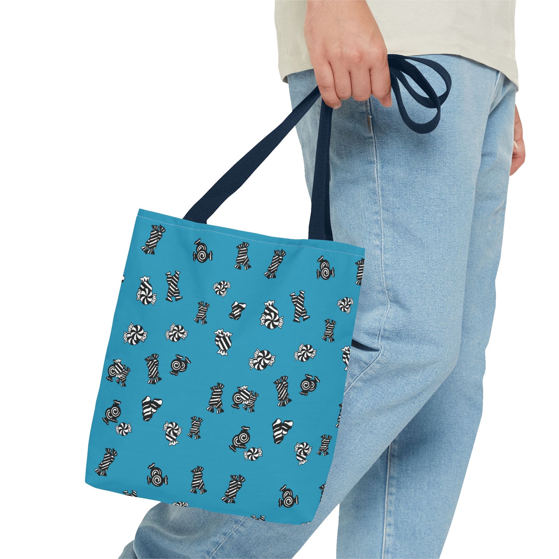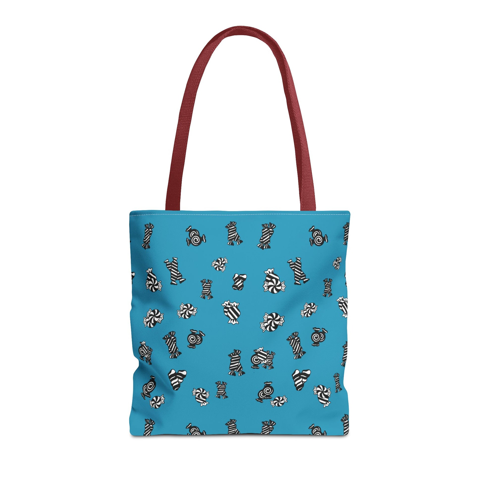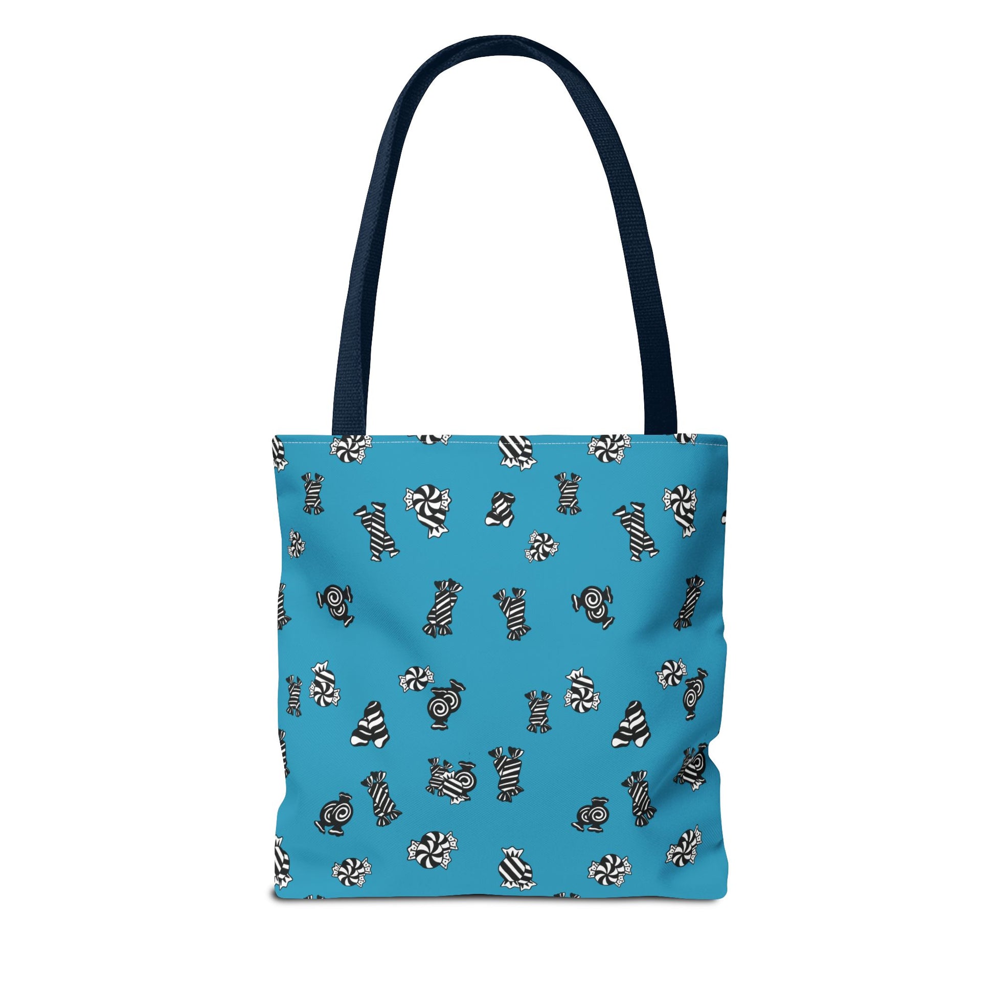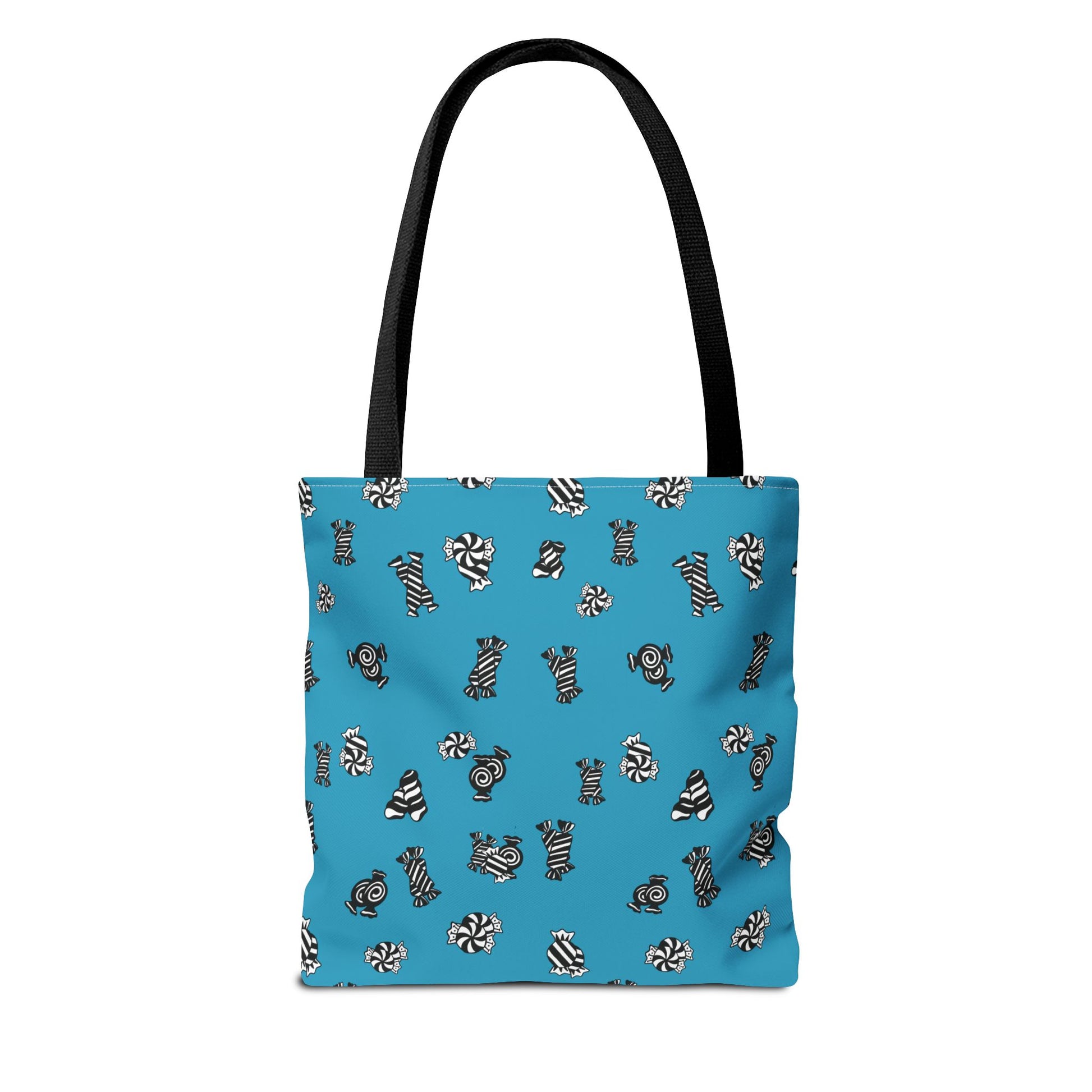 Christmas candy gothic style tote bag puts a unique twist on a old holiday tradition. tote bags come with multiple handle colors to match your designs. Made with spun polyester, these bags feature double-stitched seams, cotton webbing straps, and nonwoven laminate lining for high-end durability. Your all-over print is created with dye sublimation for high-end visuals.