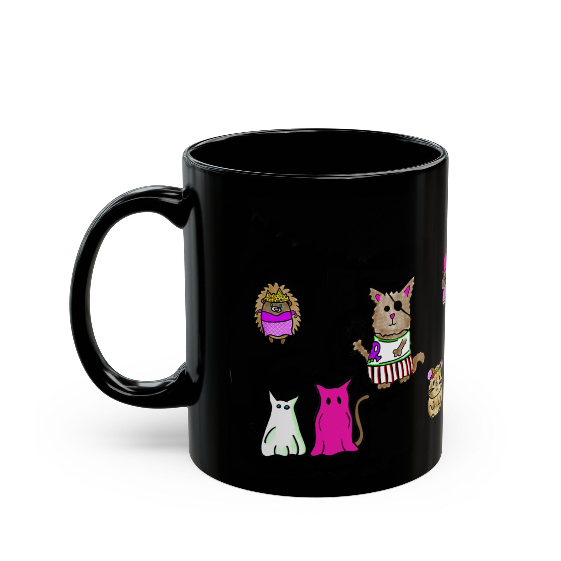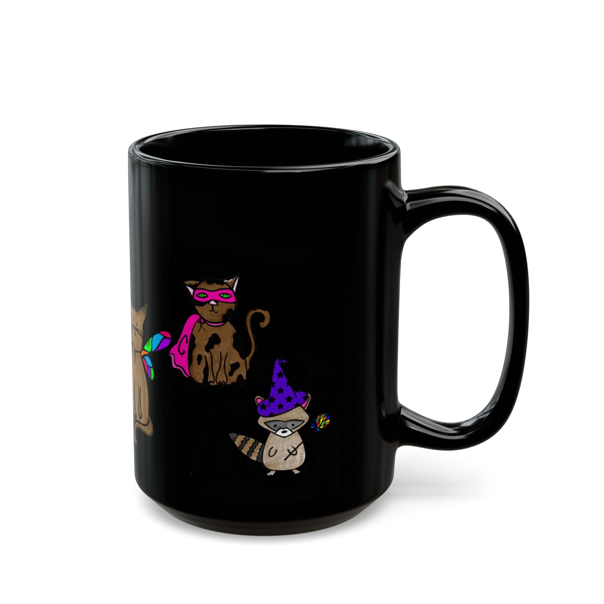 Warm up with this cute animal ceramic mug. Who doesn't smile when you see a cute furry friend all dressed up! It’s BPA and lead-free, microwave and dishwasher-safe, and made of black durable ceramic and available in 11-ounce and 15-ounce sizes. The high-quality sublimation printing makes this black ceramic mug the perfect gift for your true coffee, tea, or hot chocolate lover.