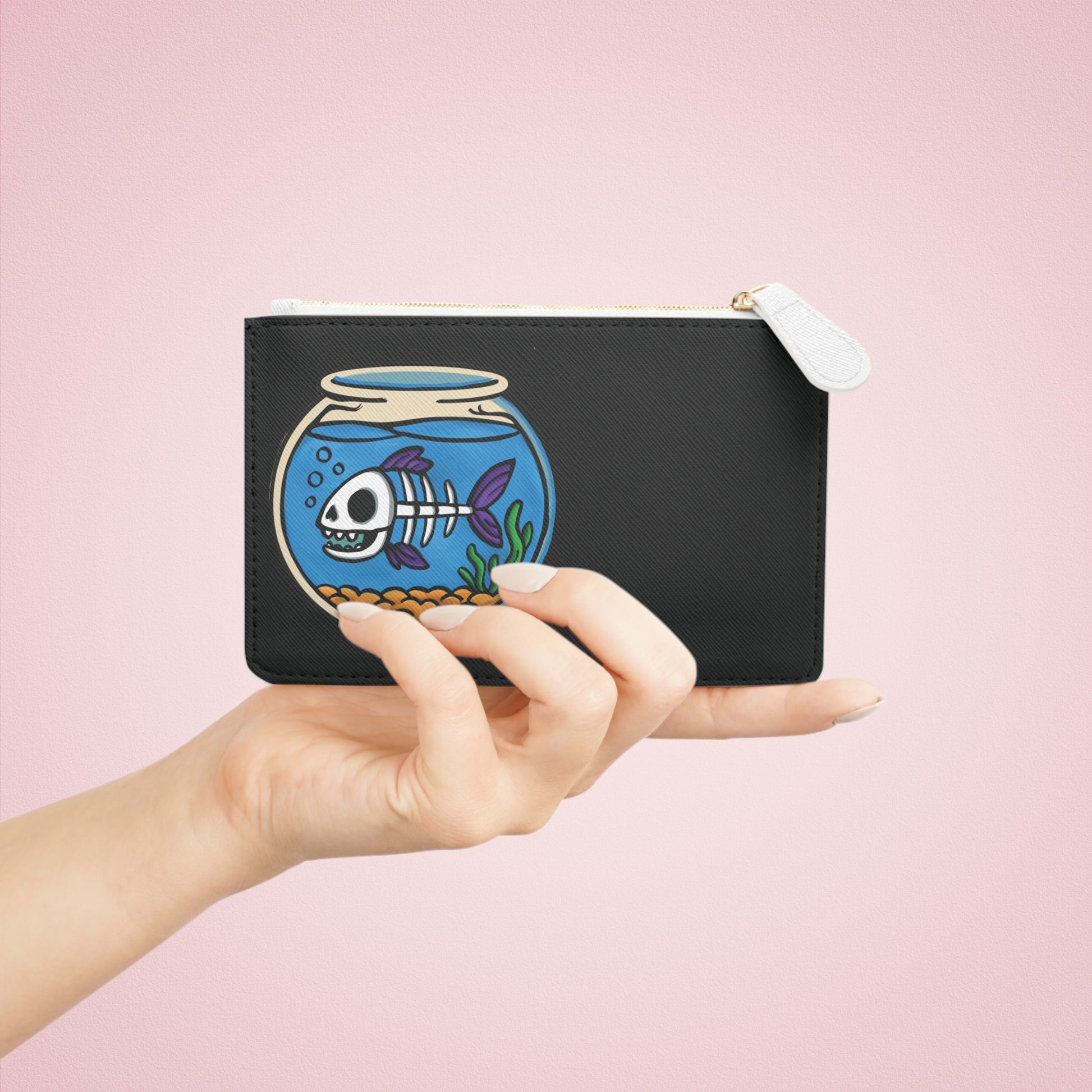 Dead fish clutch bag is a fun way to show off your style It features a zip fastener and it is made of vegan, cruelty-free leather. One compartment for cash, cards, other small items, it has a Black lining and metal zipper closure..: