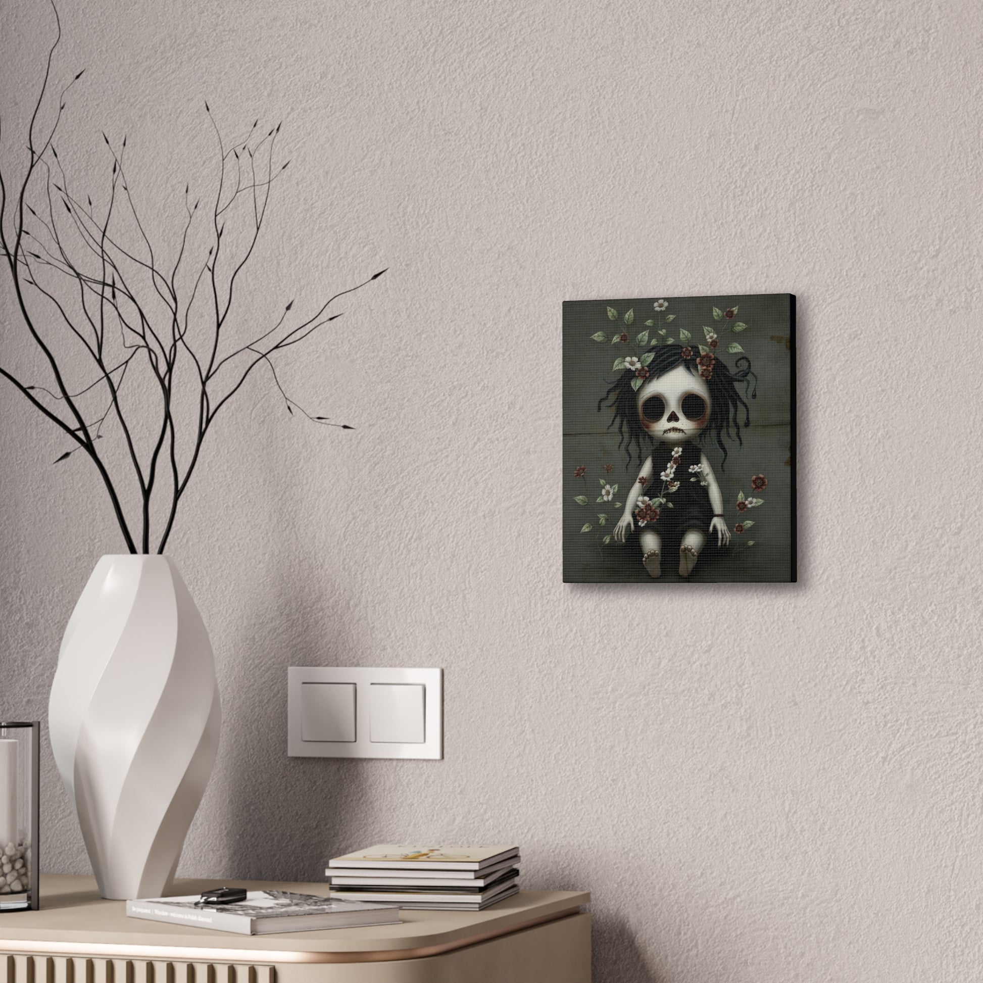 Dreams of a Doll is a perfect addition to your creepy art collection. 100% polyester canvas stretched over a pinewood frame. Does not include mounting hardware. Due to canvas production specifics, the design placement might shift for 1-3 mm and can stretch over the canvas edges