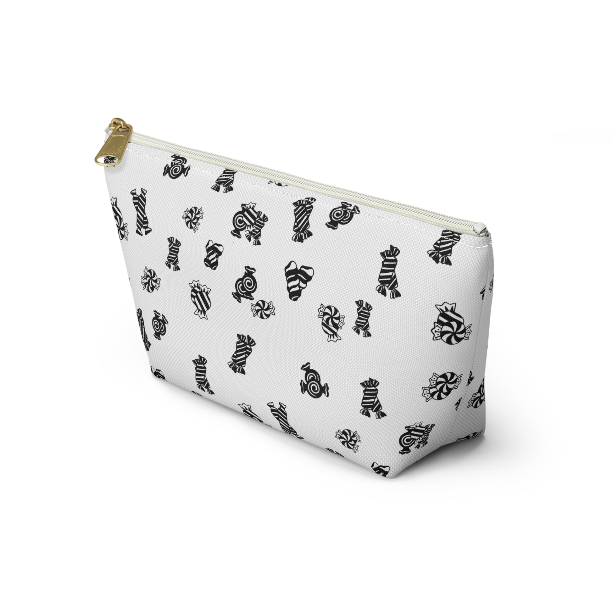 Our Gothic Candy Pouch with a t-bottom is perfect for all your needs. Our pouches vary from small to large and can be used for pretty much anything. They make excellent pencil cases and cosmetic travel bags. They are constructed from a durable material with a zipper closure.