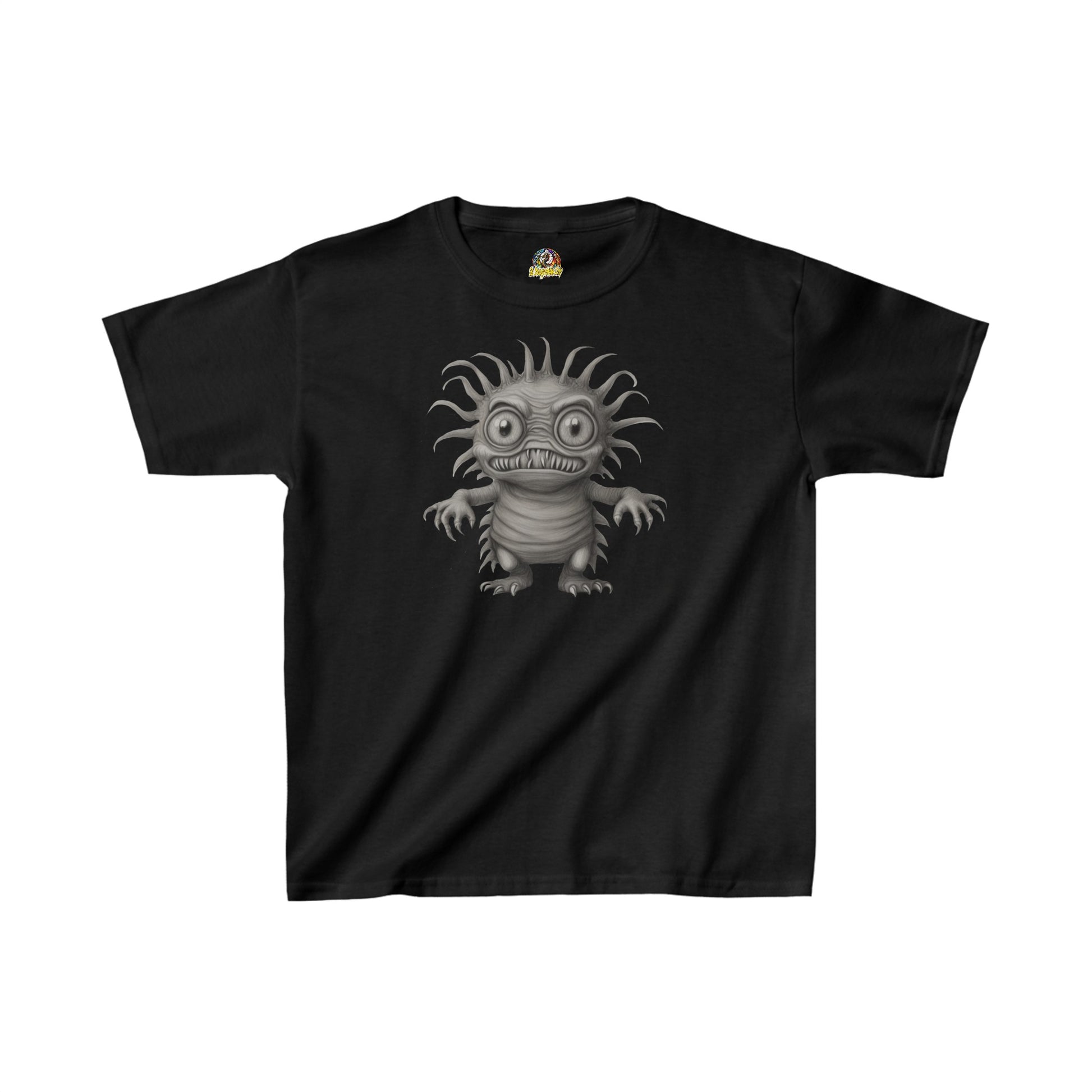 Part of our little monsters collection This kids heavy cotton tee is perfect for everyday use, for your little monster. The fabric is 100% cotton for solid colors. The shoulders have twill tape for improved durability. The collar is curl resistant due to ribbed knitting. There are no seams along the sides.