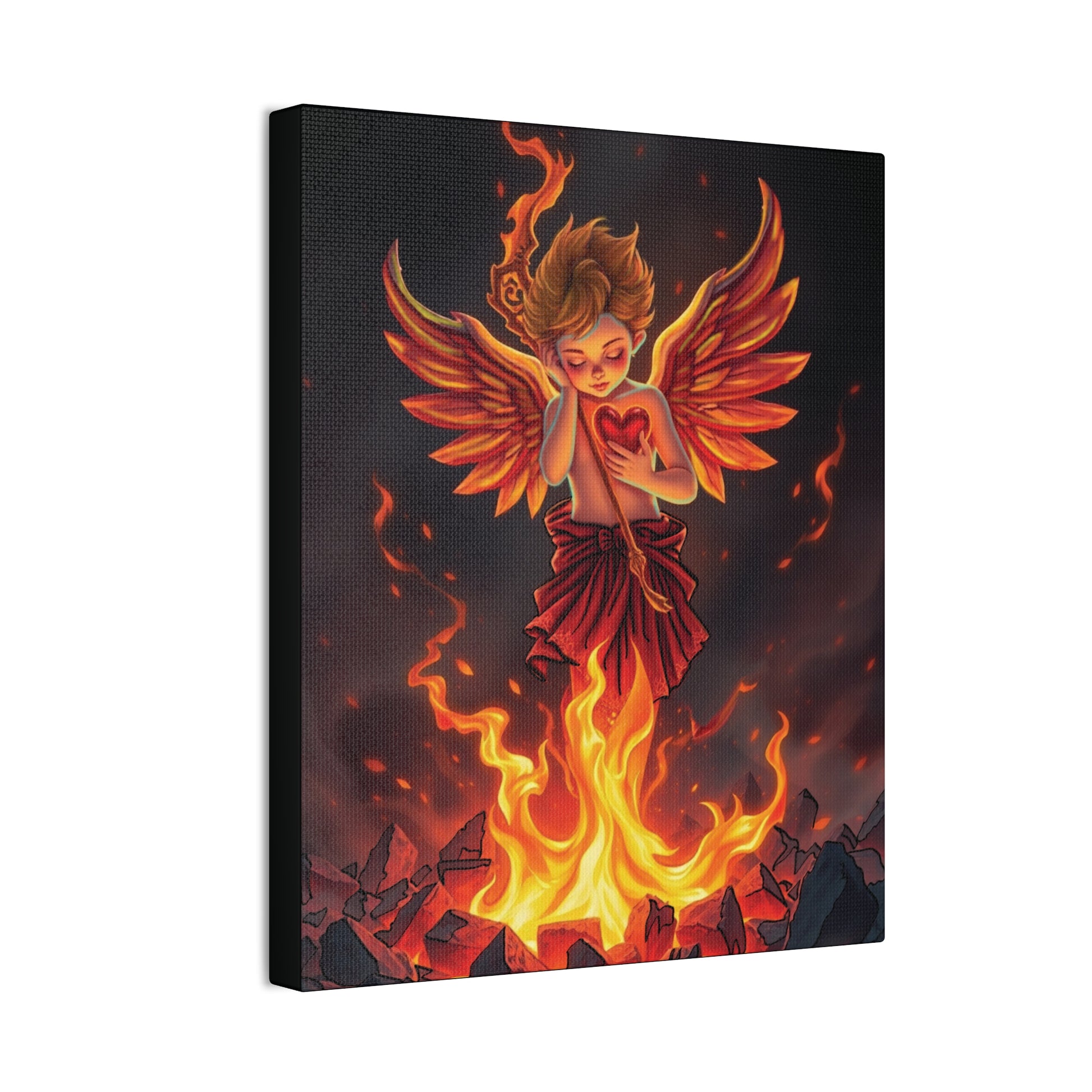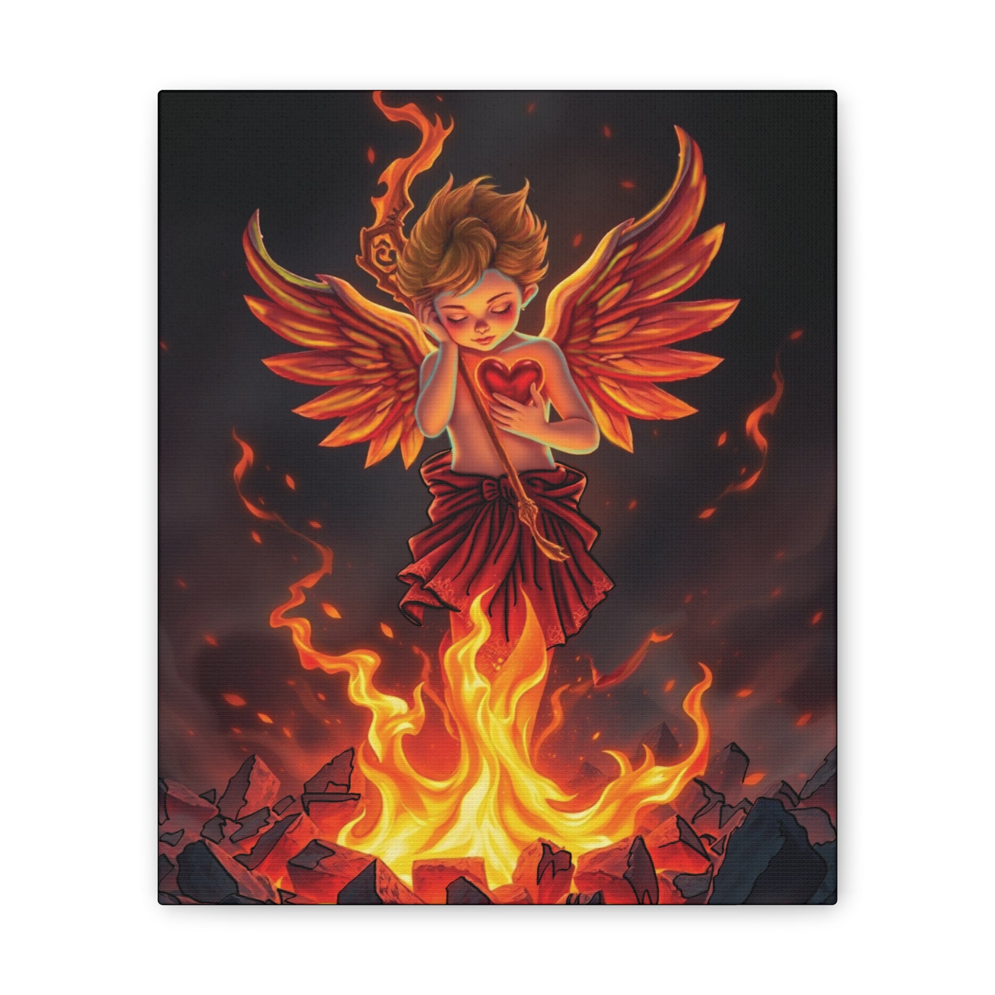 Love on fire is a bold statement. It's the burning passion of love. This is a fun piece to add to your collection. 100% polyester canvas stretches over a 0.75” pinewood frame. Does not include mounting hardware. Due to canvas production specifics, the design placement might shift for 1-3 mm and can stretch over the canvas edges