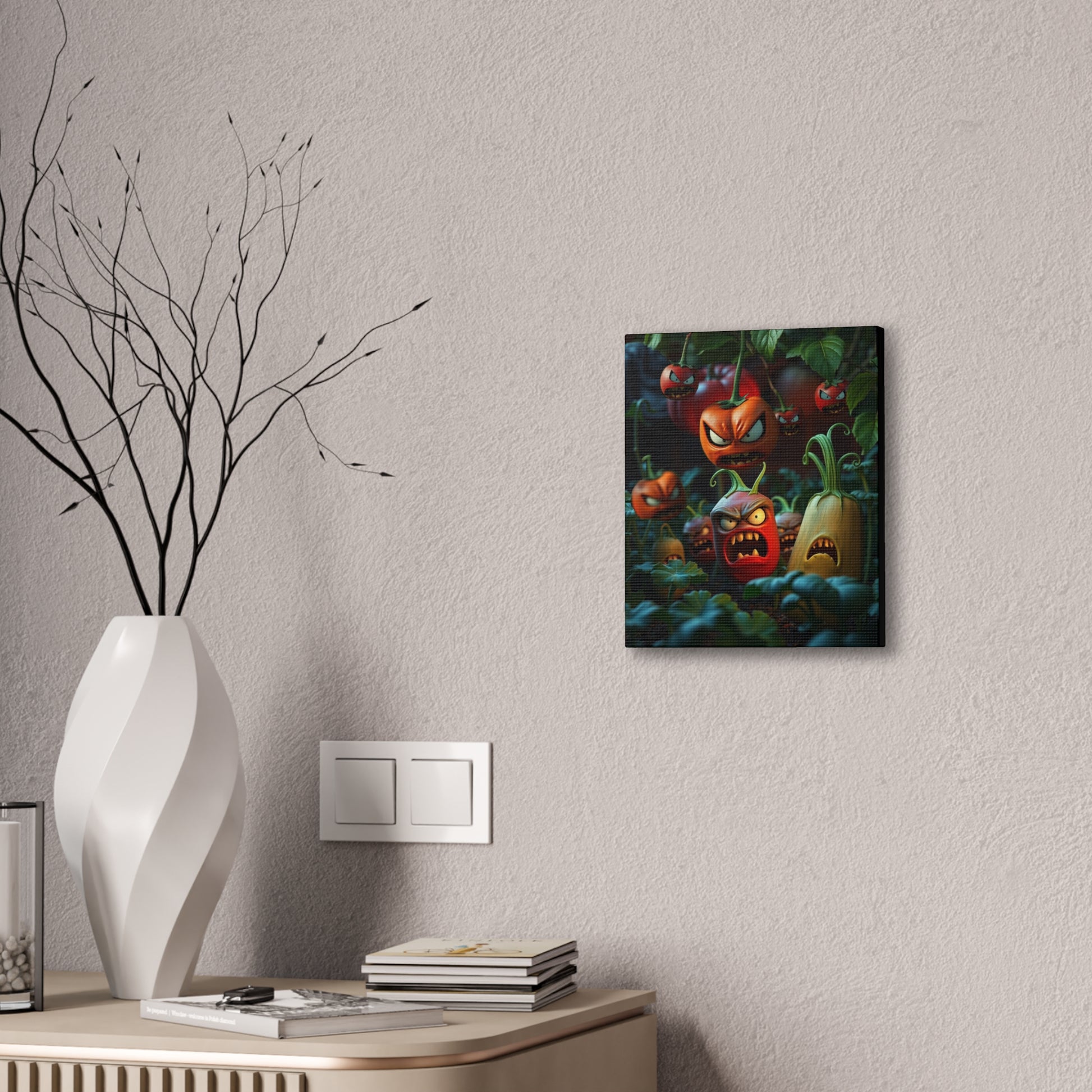 When veggies stay on the vine to long is a fun whimsical piece of art to add to your collection. It will definitely spark conversation and a laugh.
