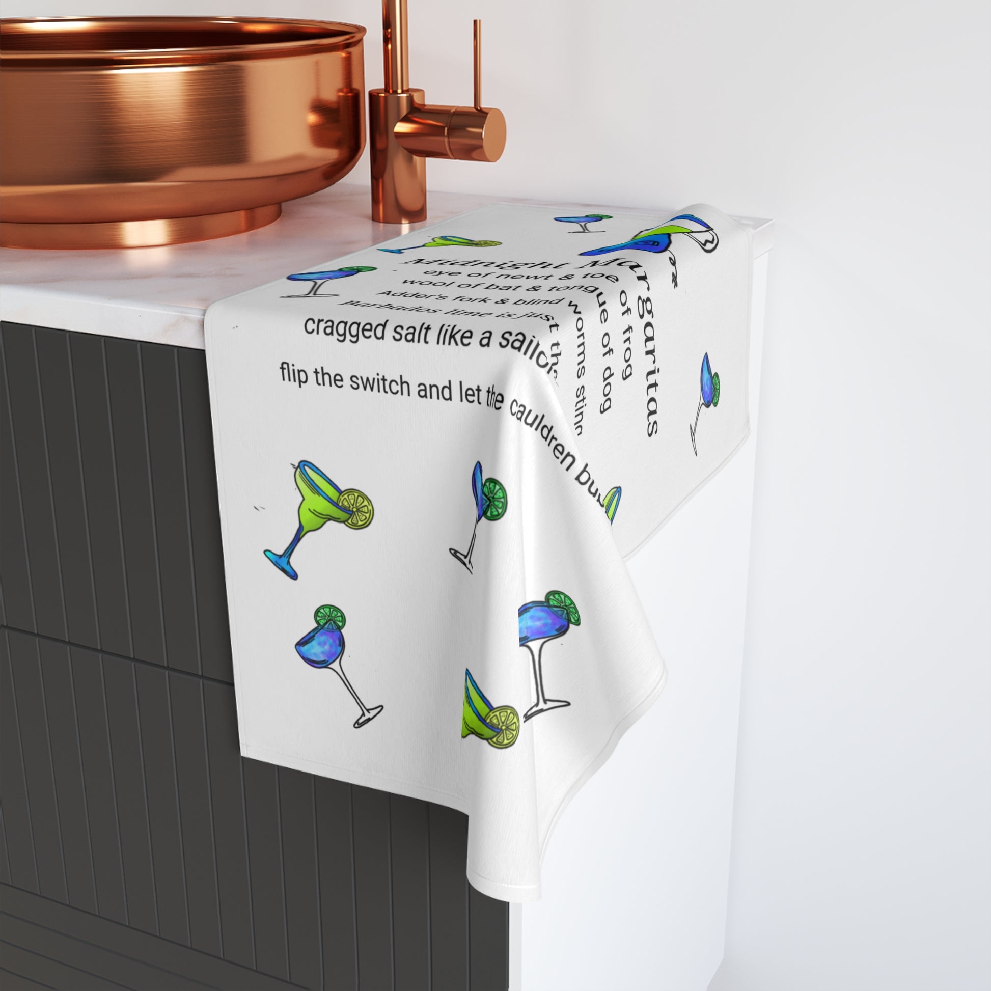 Witchy Margaritas Hand towel is the perfect accessory for your kitchen this fall. Made with a polyester front and a soft cotton back, this premium hand towel is soft, light, and absolutely chic.
